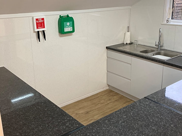 - Newly refurbished space (13m x 10m approx.) with upgraded kitchen suitable for light snacks/hot drinks, with refurbished toilets, including accessible.
